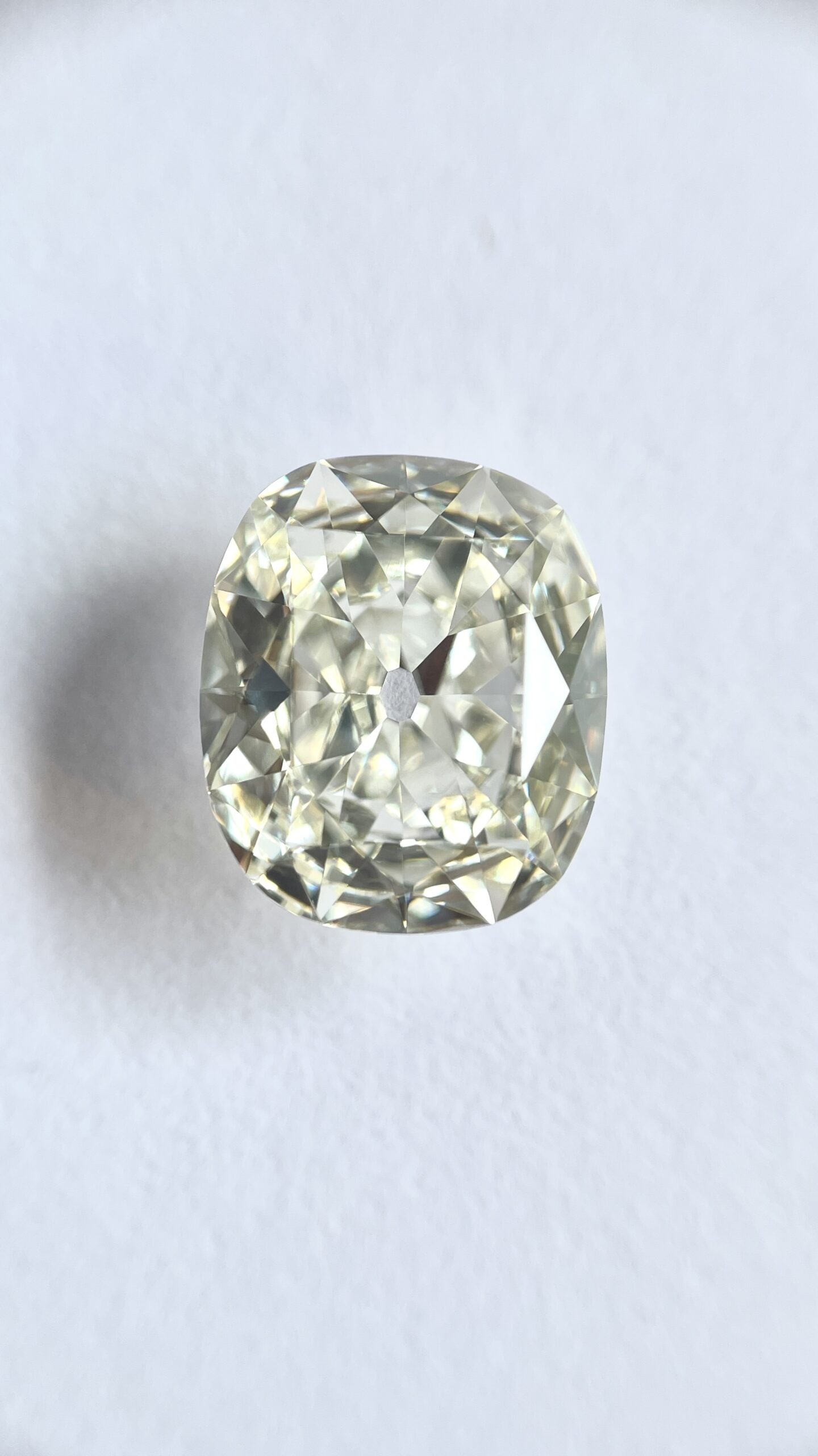 This 2.05 ct Cushion Old Mine Cut diamond showcases broad facets that deliver soft, romantic flashes of light.